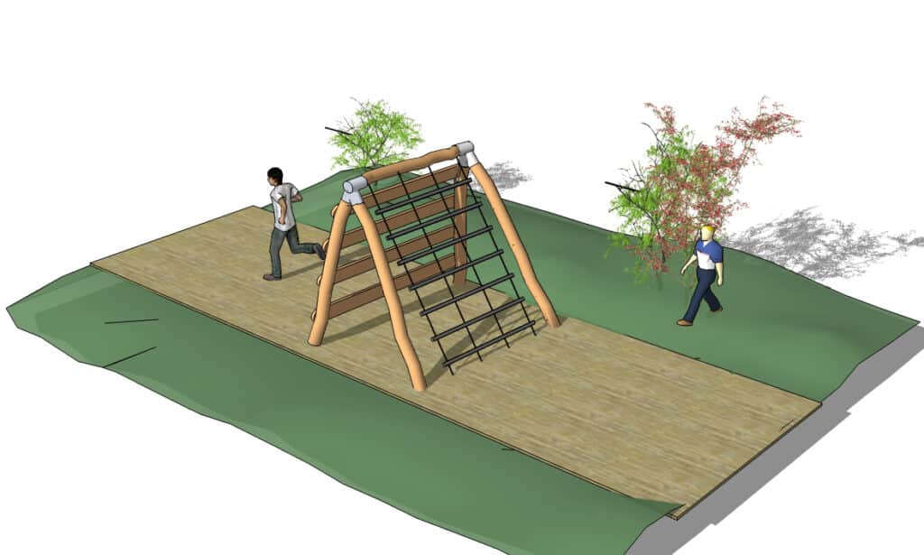På turen gennem vildmarken står denne stejle klippeside pludselig foran en. Det kræver mod, styrke og smidighed at forcere denne væg for at komme videre. Ribbevæggen er en udfordrende og anderledes klatrevæg med ribber af kraftige planker på den lodrette side og og klatrenet eller bred rebstige på den skrå side.
