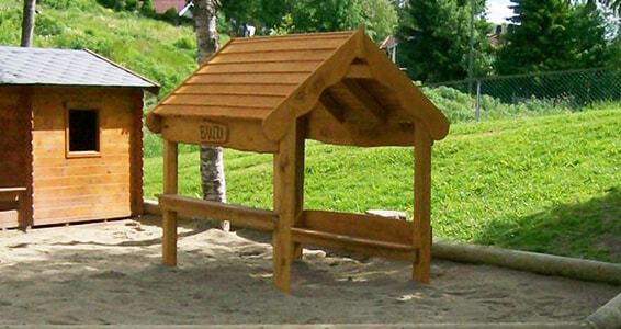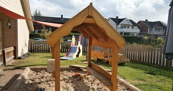 - Et anderledes træ legehus til sandleg.