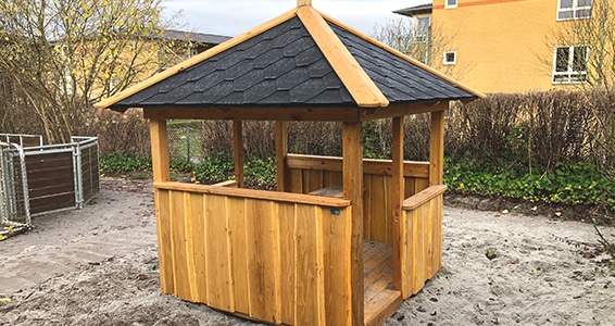 - Bygges i lærk eller robinie.