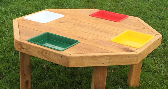 Ottekantet egetræsbord til nærstudering af kriblekrableliv og andre eksperimenter.