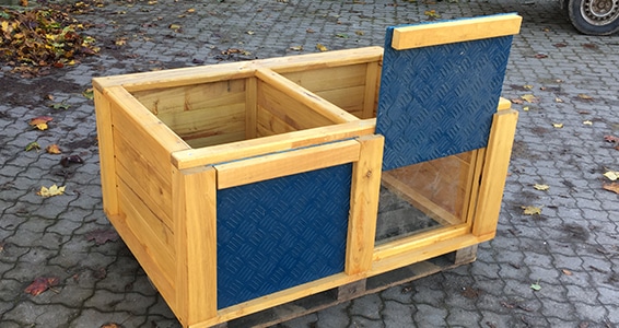 Kassen udføres helt i robinie med tyk acrylplade som vindue, og hæve/sænke låger i HDPE plader.