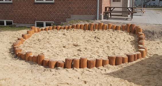 Sandkasse i palisadestubbe af robinie.