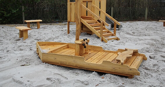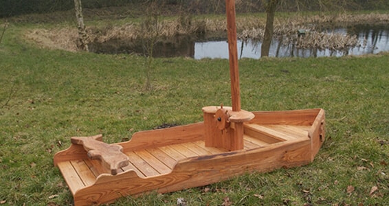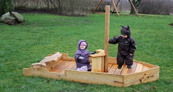 Et skib i Rasmus Klump stil, hvor der er plads til at bygge videre med kasser og tæpper og skabe sit eget legeunivers.