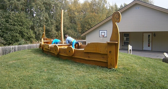 Bygget efter inspiration fra Osebergskibet. Historien medfølger.