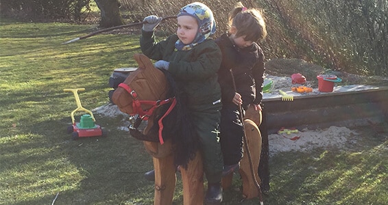 Denne rappe ganger , der lyder navnet Freja, søger glade ryttere til mange raske ture ud over stepperne og gennem skoven.