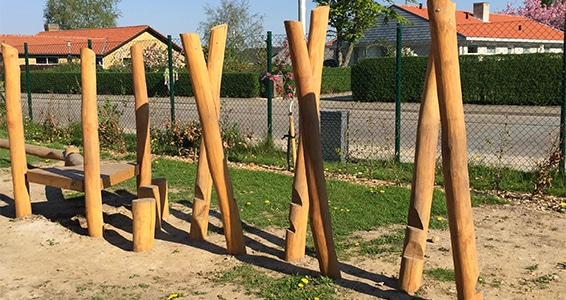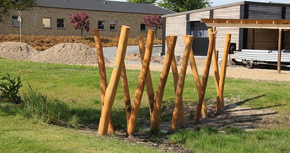 • Udført i afsplintede og pudsede robiniestolper Ø 14 – 16 cm.