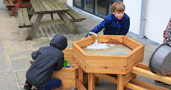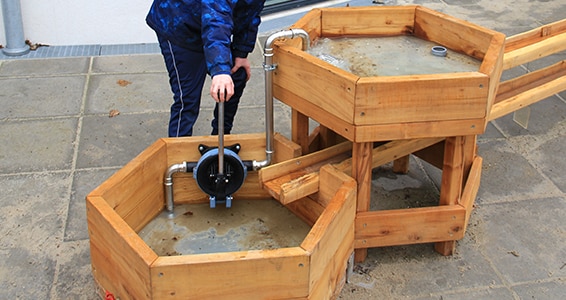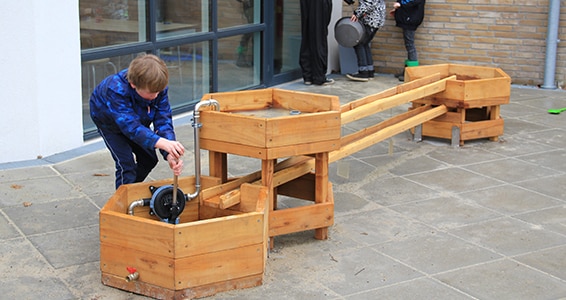 Vandleg på legepladsen er spændende for børn i alle aldre. Der kan bruges timer på at lege med vand og mudder.