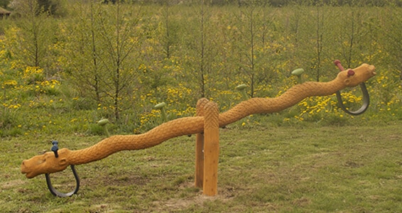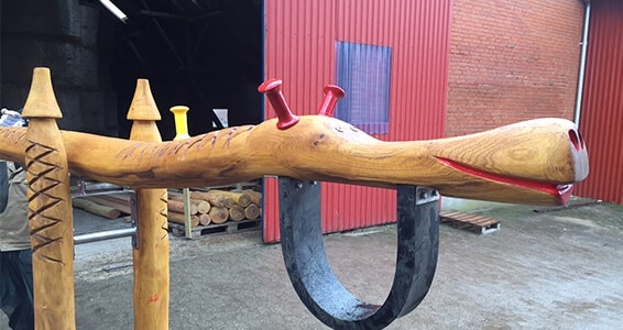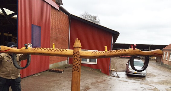 2 hovedet dragevippe udskåret i robiniestamme.
