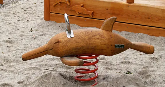 - Fjedervippe med delfinfigur udskåret i robinie.