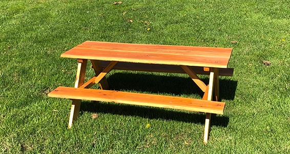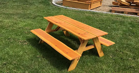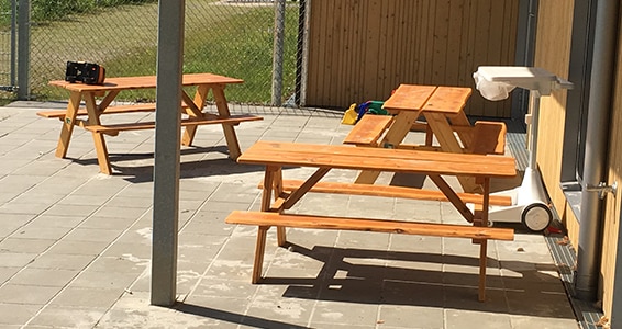 Bænke og bordplade i lærkekalmer med ‘blød kant’.